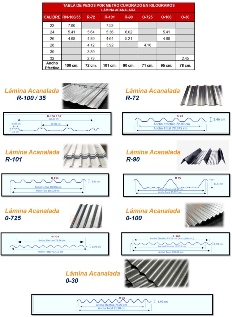 La lámina acanalada es un elemento empleado primordialmente en la Industria de la construcción, se caracterizan por ser hojas metálicas en su mayoría de diferentes perfiles, geometrías, espesores, anchos, longitudes, colores, acabados.